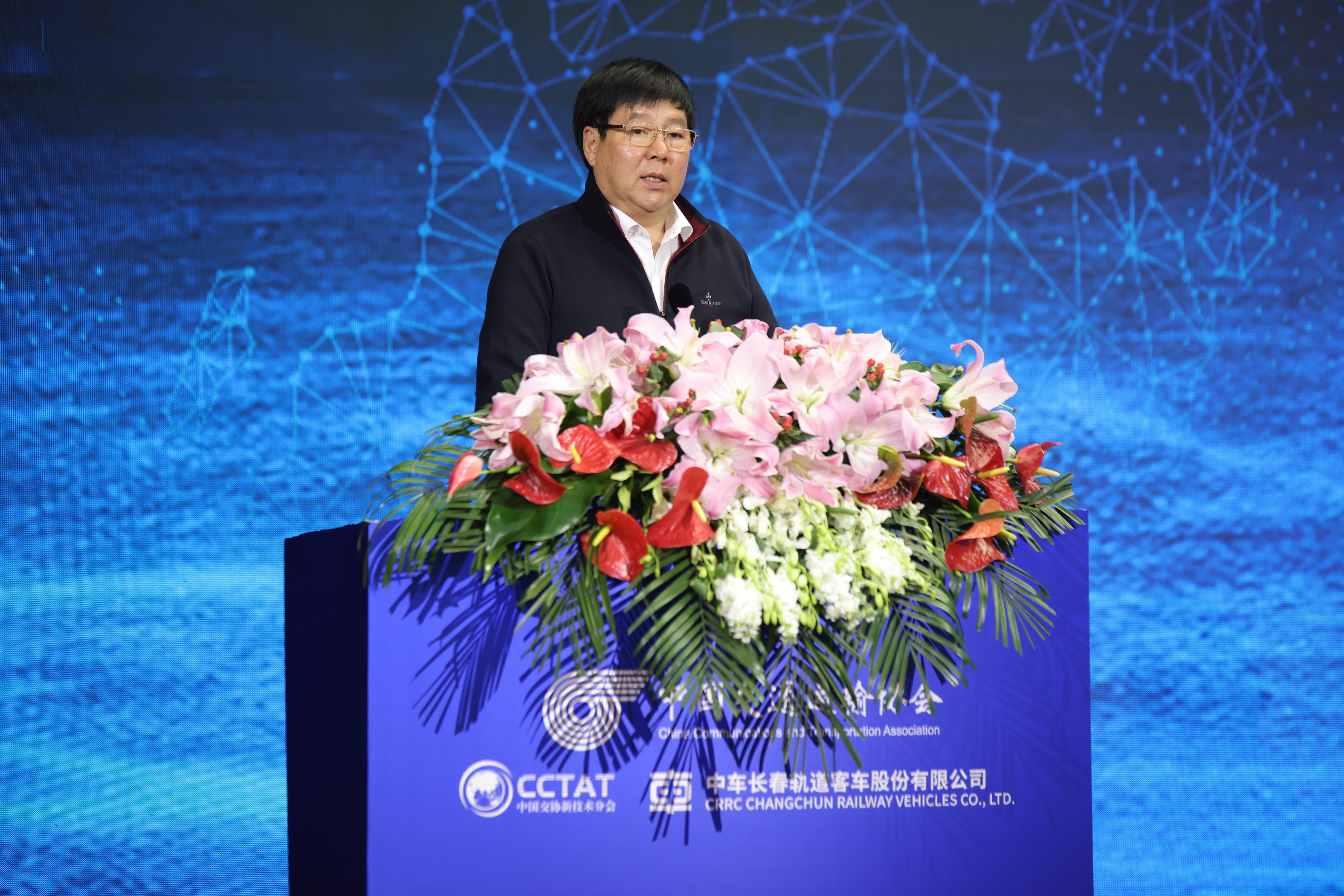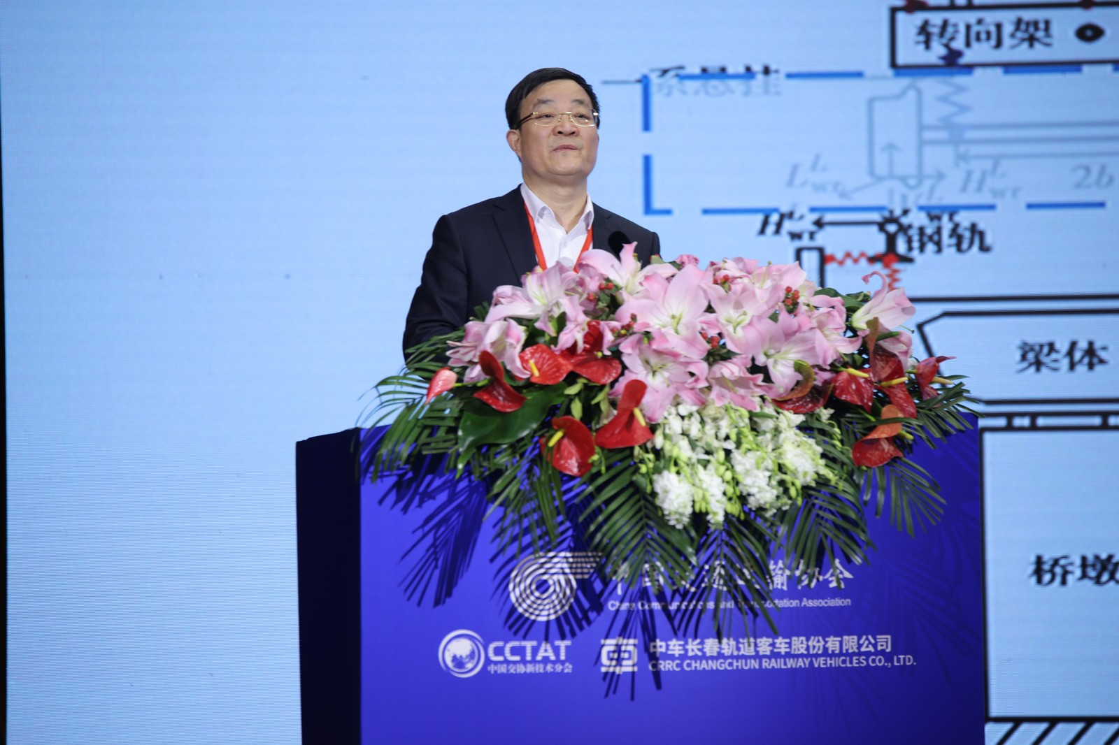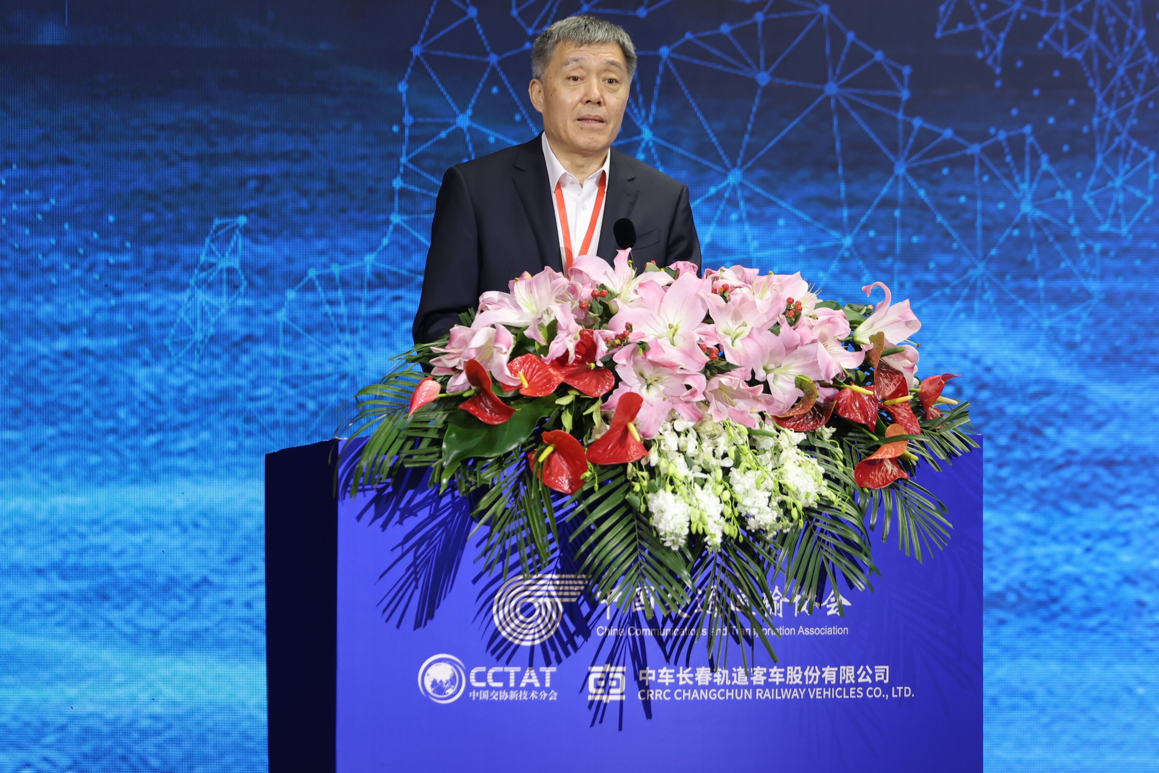中国交通运输协会会长、原铁道部党组成员、副部长胡亚东首先致辞。胡亚东会长首先对会议的顺利召开表示热烈祝贺,并期望通过本次会议,搭建院士专家、各级政府、领军企业和行业各界互动交流和深化合作平台,加快轨道交通创新链、产业链、人才链、政策链和资金链深入融合,赋能轨道交通产业发展创新。胡亚东会长表示,中国交通运输协会也将继续秉持“四个服务”宗旨,全力发挥政府和企业间的桥梁纽带、参谋助手作用,利用协会科学技术奖、团体标准编制、科技成果评价、高端会议会展、成果转化推广等多种优势资源,为轨道交通创新发展持续做出自身应有贡献。胡亚东会长指出,中国中车已经成为我国高端装备制造业的国家名片,希望中车人进一步激发科技创新活力,发挥并不断强化整体优势,持续深入推进轨道交通创新技术应用,努力产出更多标志性、引领性的轨道交通科技创新成果,创造新的、更大的发展奇迹,持续为交通强国建设贡献卓越力量!