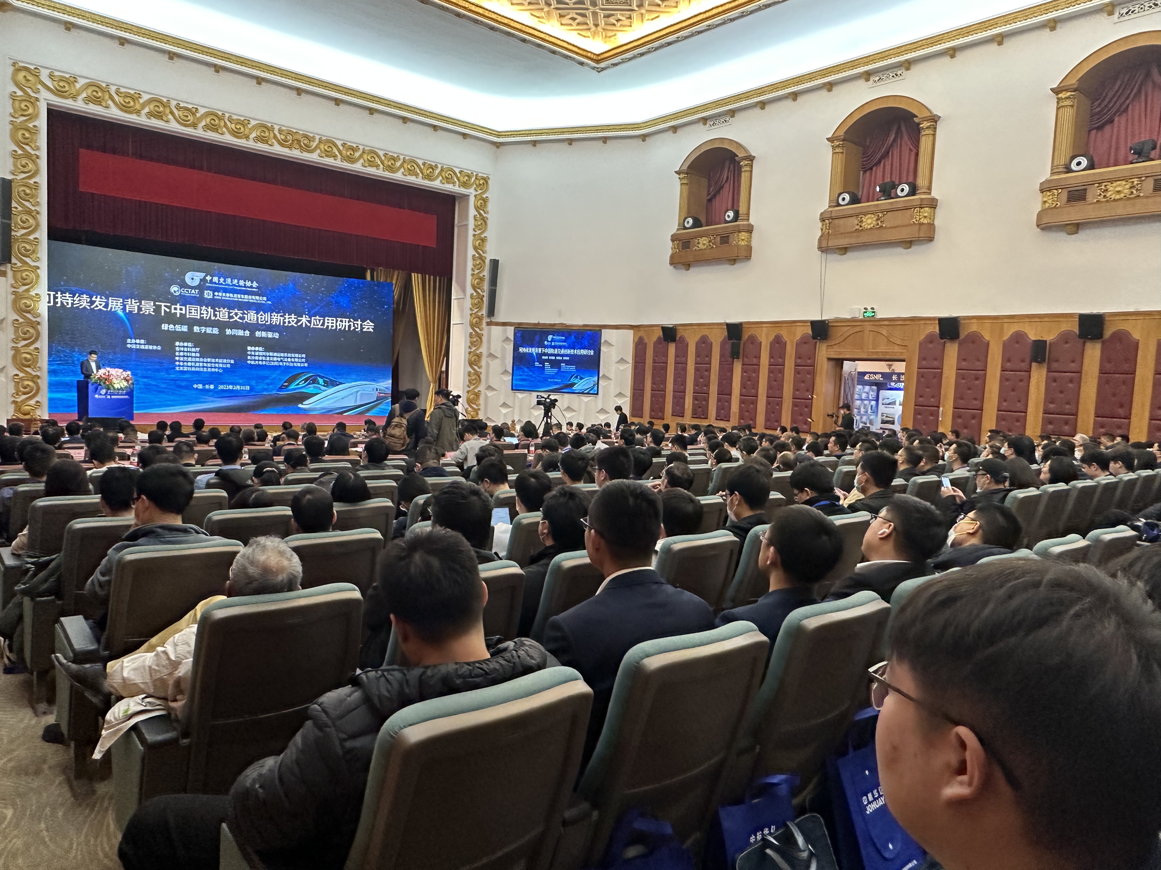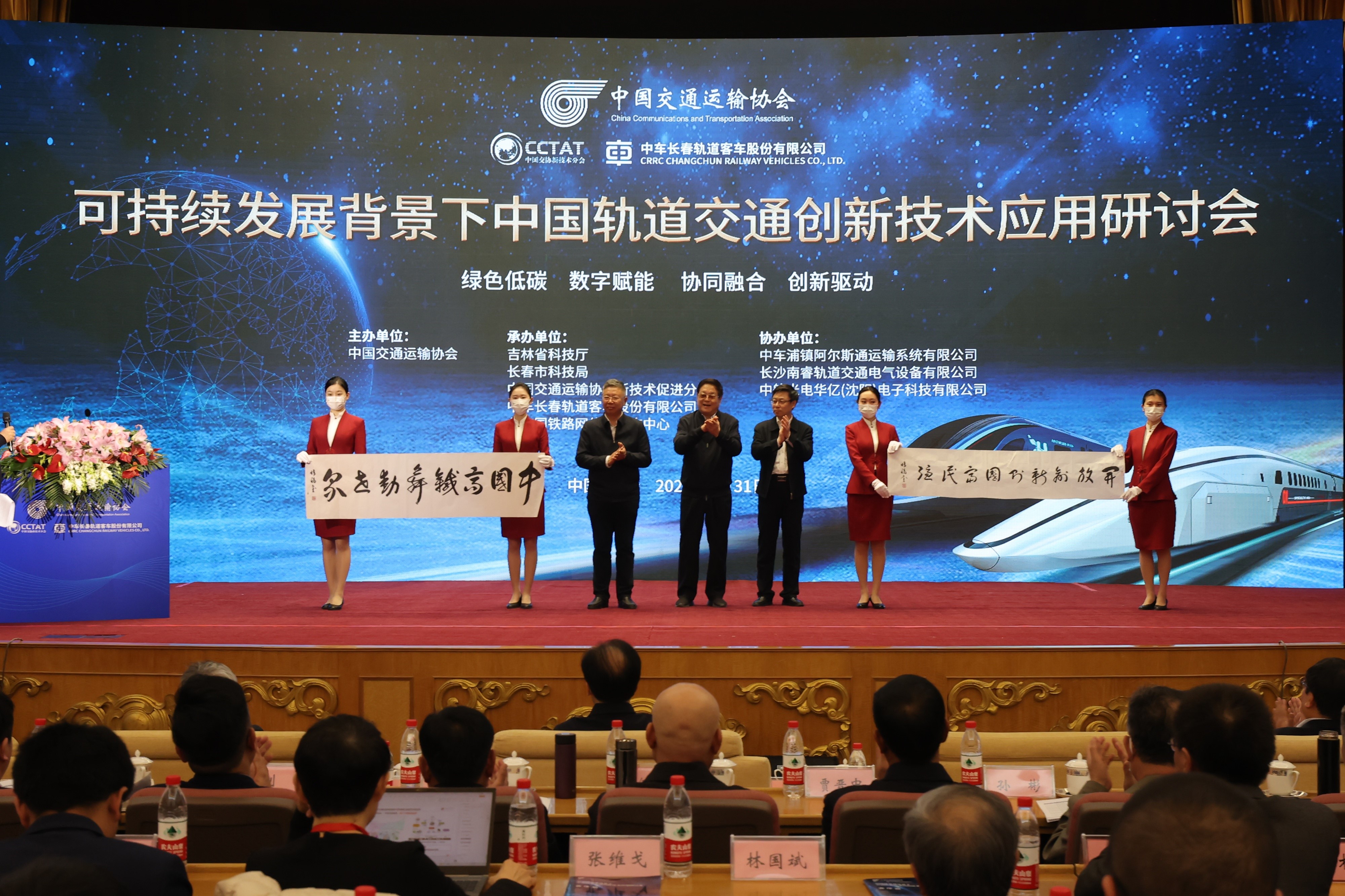 春回大地千峰秀,日暖神州万木荣。由中国交通运输协会主办,吉林省科学技术厅、长春市科学技术局、中国交通运输协会新技术促进分会、中车长春轨道客车股份有限公司、北京国铁路网信息咨询中心共同承办,中车浦镇阿尔斯通运输系统有限公司、中航光电华亿(沈阳)电子科技有限公司、长沙南睿轨道交通电气设备有限公司协办,以“绿色低碳数字赋能协同融合创新驱动”为主题的“可持续发展背景下中国轨道交通创新技术应用研讨会”在北国春城长春隆重召开。来自全国各地从事轨道交通技术研发、装备制造、工程建设、运营管理的相关政府部门、科研机构、高等院校、企事业单位的专家学者、专业人士共计350余人参加会议,近2000人通过线上直播方式关注大会开幕式盛况。