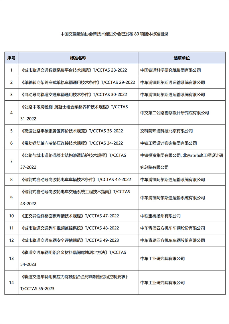 近日,中国交通运输协会新技术促进分会标准化建设工作取得重要阶段性成果。截至目前,分会牵头编制发布的团体标准总数已突破80项,这一重要里程碑的达成,充分彰显了分会在推动行业标准化建设过程中发挥的积极作用,为促进交通运输行业高质量发展提供了相应的技术支持和规范依据。