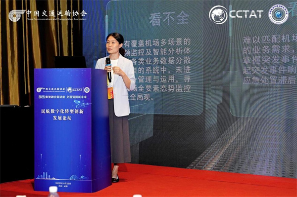 民航成都电子技术有限责任公司技术部副经理党婉丽报告题目为《机场一体化AI智能分析管理平台》。报告围绕全面构建从工具链到机场运行、管理一站式应用管理体系,支持数据管理、模型训练、业务算法灵活编排,涵盖旅客、工作人员、行李、车辆等各类业务对象分析,为机场航站楼管理、地面服务保障、信息等部门提供基础数据支撑,实现机场全要素态势精准监测、管理展开。